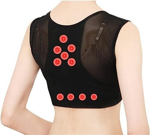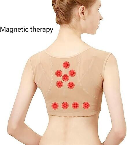 Discrete, form-fitting back corrector combines shapewear with magnet support to improve posture. Lightweight, breathable fabric, adjustable straps, and hidden under clothing for daily wear, work, or special occasions, delivering comfort, health benefits, and a natural silhouette.