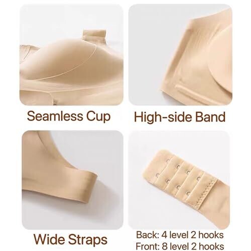 • Wireless design and full coverage offer discreet shaping without underwire, ideal for all-day wear.