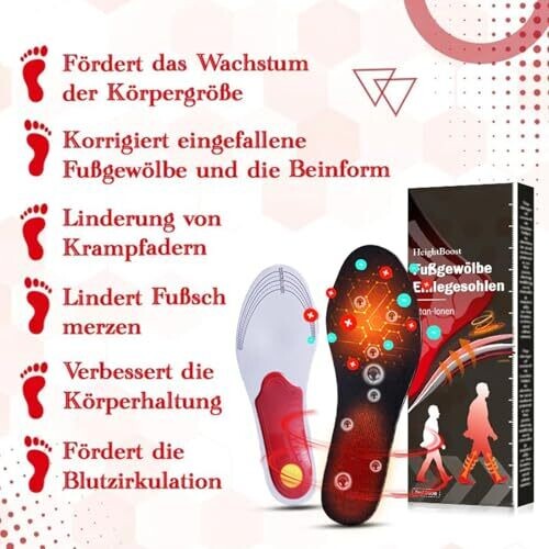 The insoles are designed to ease foot discomfort while aligning the spine, foot, and pelvis. They are ergonomically designed to provide arch support and comfort and are compatible with common footwear.