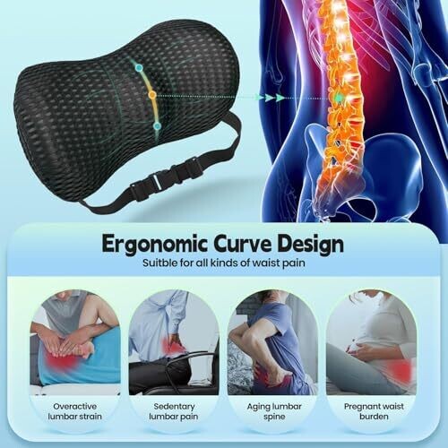 Ergonomically designed lumbar pillow to support and correct the natural curve of the lower back, providing support for different body parts and relief from lower back pain.