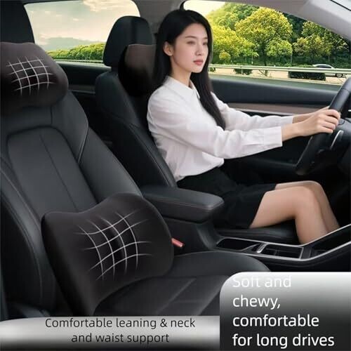Experience a 2-piece set with a memory foam neck pillow and lumbar cushion. Ergonomic design, washable covers, and breathable, posture-supporting support to reduce fatigue during long drives and daily commutes. Universal fit for car interiors and office chairs.