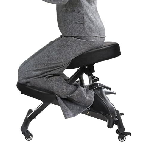 • Innovative kneeling chair design that blends modern style with practical support, encouraging a healthier sitting position for home or office use.