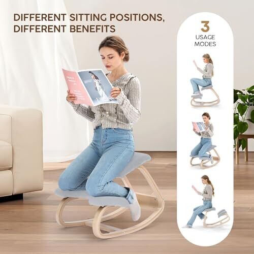 Promotes upright posture and reduces fatigue with thick cushioning and breathable fabric. Solid wood frame, smooth base, and gentle rocking for balance, core activation, and comfort during long work sessions at home or in the office.