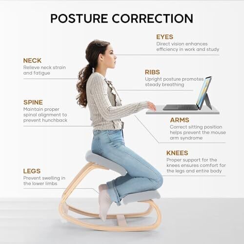 • Transform your workspace with a kneeling chair designed to promote healthy, upright posture and reduce fatigue during long work sessions.