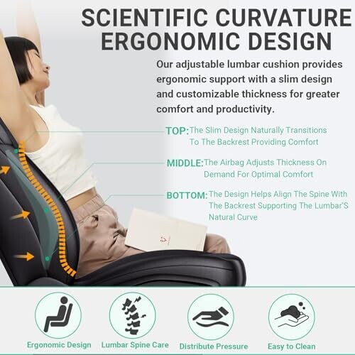 • Customizable comfort with an adjustable air chamber lets you tailor thickness to your preferred lumbar support level, ensuring a personalized seating experience.