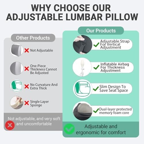 • PILCAVE Adjustable Lumbar Back Support Pillow with Air Pump and Straps