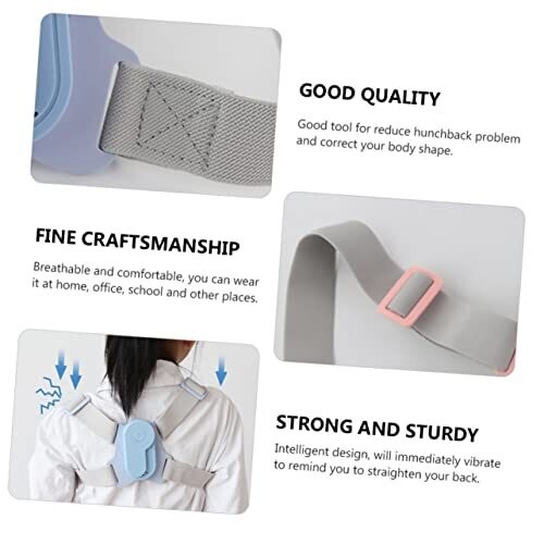 The product uses a spine and chest extension framework to aid posture correction. It includes an intelligent sensor that provides vibration reminders when posture deviates from the desired alignment. The back brace is designed to be breathable and comfortable for wear at home, in the office, or in school. The strap is manufactured from ABS material of high quality, contributing to durability and a long service life. The shoulder support is ergonomically shaped to fit the natural curves of the body when worn.