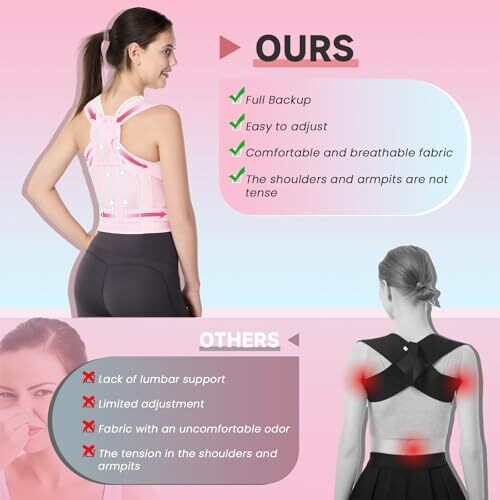 - Vervex - Posture Corrector for Men and Women: a stylish pink back brace designed to straighten your posture and support your spine throughout the day.