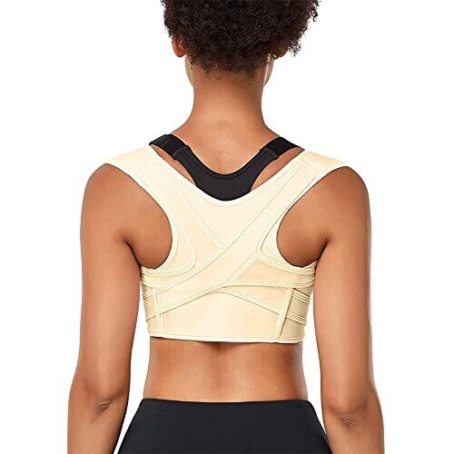 - Introducing the Invisible Posture Corrector Upper Back Brace for Women and Men — a sleek, beige, medium-sized support designed to improve posture with a discreet profile.