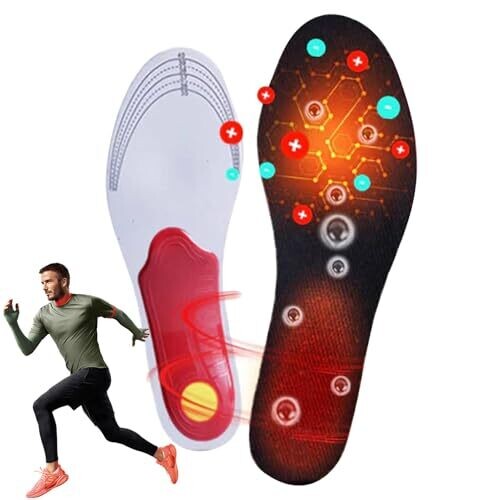 The insoles are designed to ease foot discomfort while aligning the spine, foot, and pelvis. They are ergonomically designed to provide arch support and comfort and are compatible with common footwear.