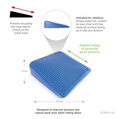 66Fit Bp-074A Junior Inflatable Posture Wedge Cushion with Pump – Blue, 25X25X6-1cm
