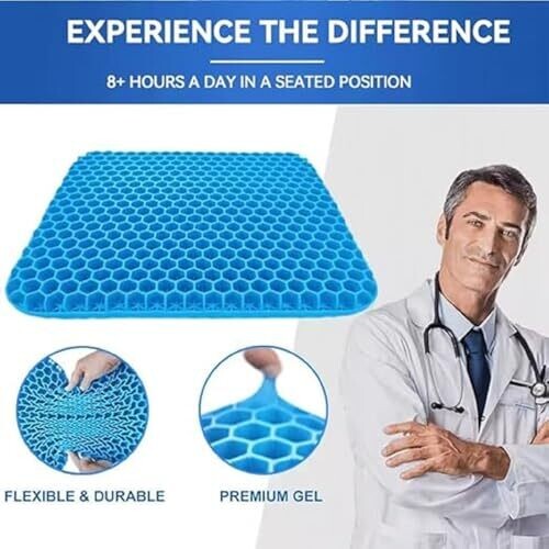 Experience all-day comfort with a double-thick, breathable gel cushion designed for office chairs, gaming chairs, cars, and wheelchairs. The honeycomb gel core contours to your body, reducing pressure while staying cool and easy to keep clean and secure.