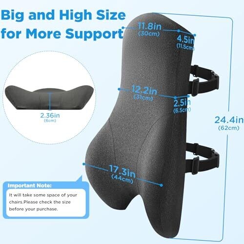Teemour's high back support pillow delivers full back and lumbar support for office, desk, or gaming chairs. The memory foam adapts to your spine, promoting posture and easing pain. Adjustable straps secure the cushion for stable all-day comfort.