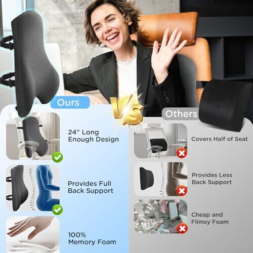Teemour High Back Support Pillow for office Chair — Lumbar Memory Foam Cushion