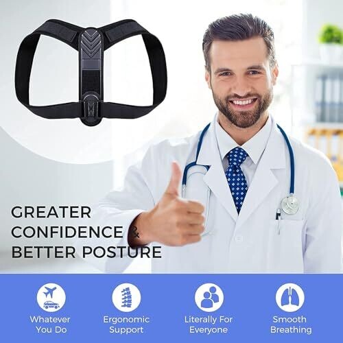 Supports proper alignment with adjustable shoulder and clavicle support for both men and women. Soft, comfortable fabric fits under clothing and is suited for work, exercise, or relaxation, helping relieve neck, back, and shoulder pain while improving posture.