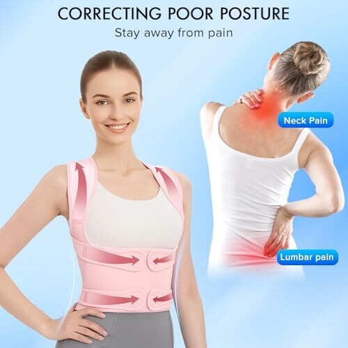 • Necomi Posture Corrector for Women and Men - Adjustable Shoulder Support (Pink, L)