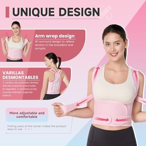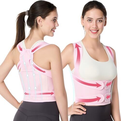 - Vervex - Posture Corrector for Men and Women: a stylish pink back brace designed to straighten your posture and support your spine throughout the day.
